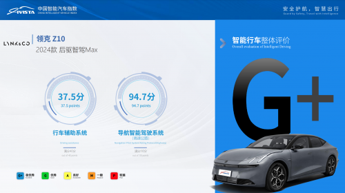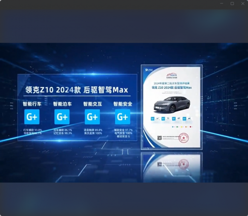 【2025年1月14日,杭州】领克Z10以其同级领先的性能和先进的智能科技,荣获中国汽研IVISTA智能汽车指数的4G+成绩,成为首批在中国汽研IVISTA的测试中,获得4G+成绩的智能轿车,充分展现了领克Z10在智能汽车领域持续进阶的实力,为用户带来了更便捷智能的出行体验。中国汽是国家一类科研院所,也是行业权威的汽车测试机构之一。此外,它更是全球首个专为消费者打造的公平、公正、专业且权威的智能网联汽车第三方测试评价体系——IVISTA中国智能汽车指数测评的创立者。该测评体系涵盖了智能行车、智能泊车、智能交互以及智能安全等四大核心测试项目,测试标准严苛且全面。在如此高标准的测试环境下,领克能够斩获4G+的优异成绩,这充分证明了领克在智能化领域持续发力并取得了显著成效。