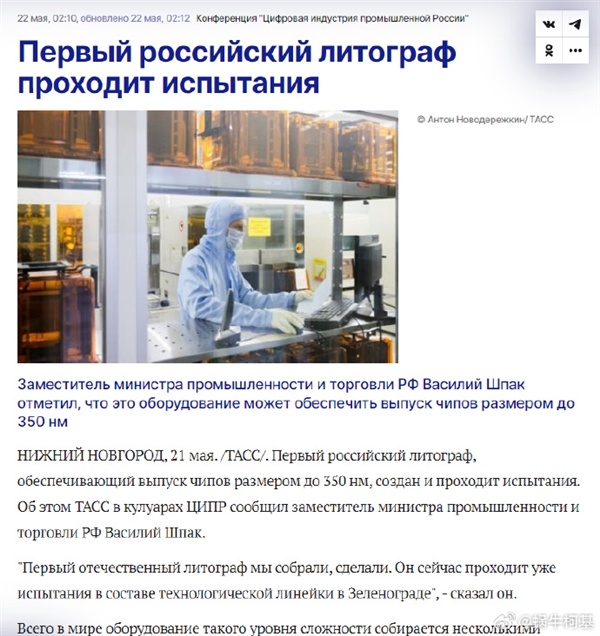 不过俄罗斯也根本没啥怕的,在这之前他们首台光刻机已经制造完成并正在进行测试。