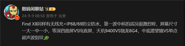 今日数码闲聊站透露,OPPO即将发布的Find X8系列将支持最高等级的防水能力,即IP69防尘防水。