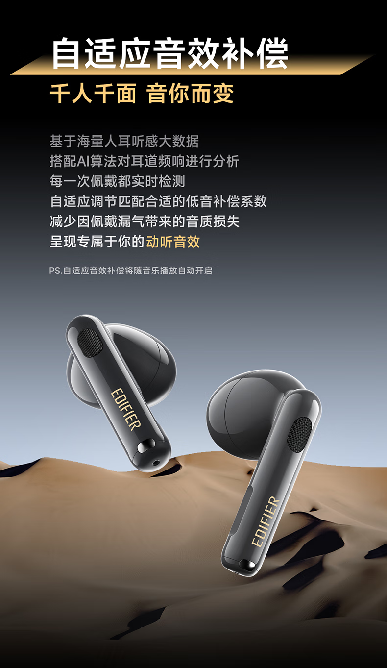 自适应声学校准技术,根据佩戴贴合度实时优化三频均衡