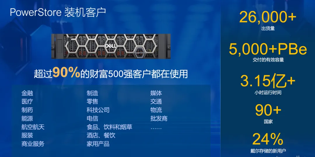 最新数据显示,自诞生五年来,PowerStore已成功部署于全球90余个国家和地区;服务对象覆盖超90%的《财富》500强企业。